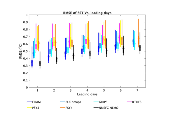海表溫度7天預報均方根誤差對比(央廣網(wǎng)發(fā) 自然資源部供圖)