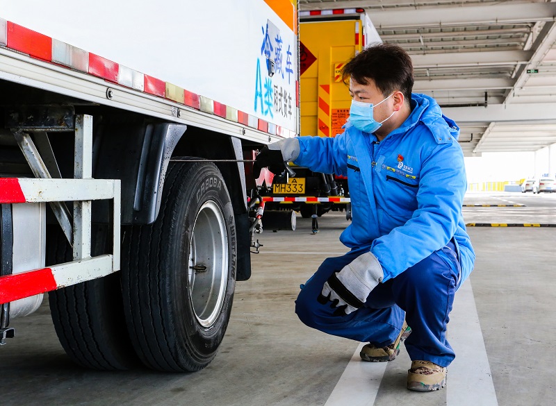發(fā)車前,北京環(huán)衛(wèi)集團(tuán)固廢物流公司醫(yī)廢中心職工王廣檢查作業(yè)車輛(北京環(huán)衛(wèi)集團(tuán)供圖)