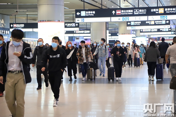 8日晚間北京迎來返京旅客客流高峰(央廣網(wǎng)記者 張佳琪 攝)
