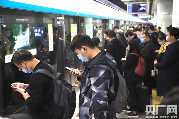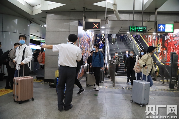 北京地鐵4號(hào)線采取延時(shí)運(yùn)營(yíng)措施應(yīng)對(duì)返京大客流(央廣網(wǎng)記者 張佳琪 攝)
