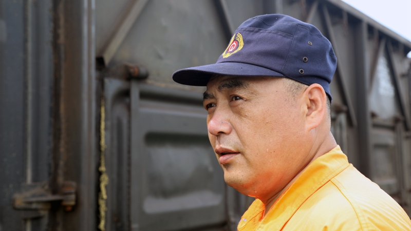 調(diào)車人員被汗水浸濕了外套(央廣網(wǎng)發(fā) 沈陽(yáng)鐵路供圖)