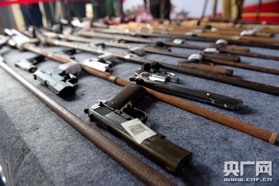 即將銷(xiāo)毀的非法槍支(央廣網(wǎng)記者 謝元森 攝)