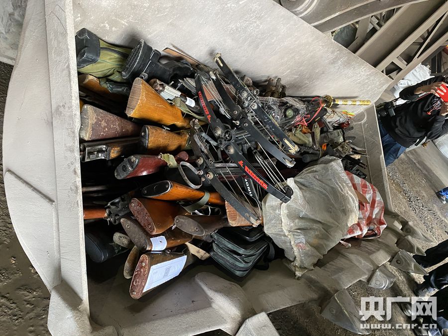 弓弩等非法器具也一并銷(xiāo)毀(央廣網(wǎng)記者 謝元森 攝)