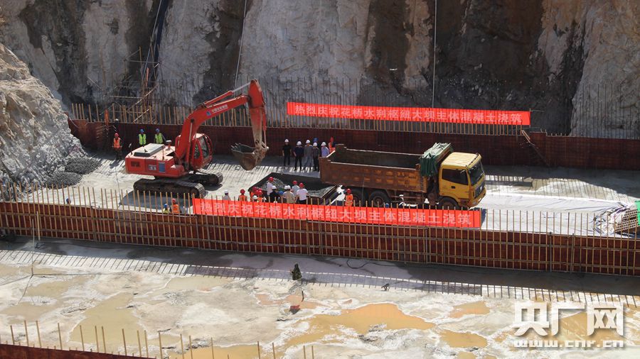 花橋水利樞紐工程大壩主體混凝土開倉澆筑(央廣網(wǎng)發(fā) 通訊員供圖)