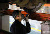 地勤機械師正在認(rèn)真檢查剛?cè)霂斓膭榆嚱M -