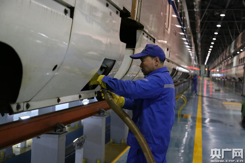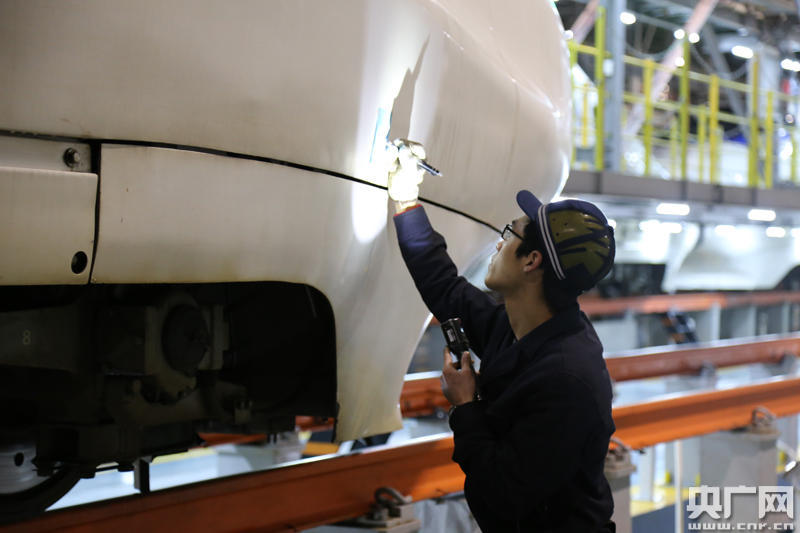 地勤機械師正在認(rèn)真檢查剛?cè)霂斓膭榆嚱M 央廣網(wǎng)南寧1月30日消息(記者許大為 通訊員覃付剛 石濟銘)為了確保春運期間動車運行安全,中國鐵路南寧局集團有限公司所屬的桂林動車所加強調(diào)度指揮工作,做好人力調(diào)配,強化夜間入庫動車的檢查保養(yǎng)工作。工作人員加強了對動車上的各項設(shè)備、設(shè)施進行全面整修,消除安全隱患,確保動車組以整潔、安全的狀態(tài)投入到春運工作中。 -