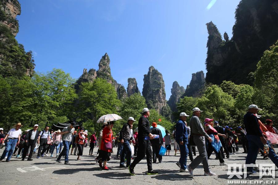 •    吳勇兵攝   央廣網(wǎng)張家界4月30日消息(記者傅蕾 通訊員吳勇兵)4月29日,“五一”小長假第一天,湖南張家界武陵源風(fēng)景區(qū)天高云淡,峰林綠染,溪湖碧清,吸引各地游客前來享受輕松愜意的“五一”假期。