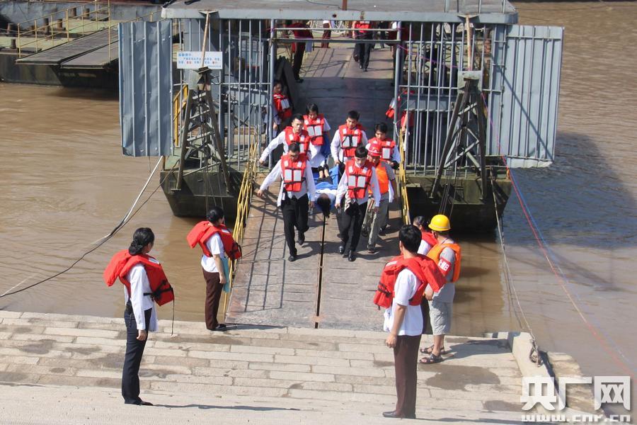 長江客船綜合應(yīng)急處置演練在重慶忠縣舉行(央廣網(wǎng)發(fā) 彭南祥攝) 驕陽下,火勢越來越大,“世紀(jì)寶石”輪消防、隔離、救助、疏散4個(gè)小隊(duì)爭分奪秒,開展自救;3艘海巡艇科學(xué)指揮,維護(hù)通航秩序;2艘救助船舶積極迎戰(zhàn),全力滅火;工作人員各司其職,有序組織旅客疏散;醫(yī)療救援隊(duì)伍集結(jié)以待,以備救援。大約45分鐘后,船上明火被撲滅,旅客也全部疏散完畢,無人員傷亡,演練取得圓滿成功! -