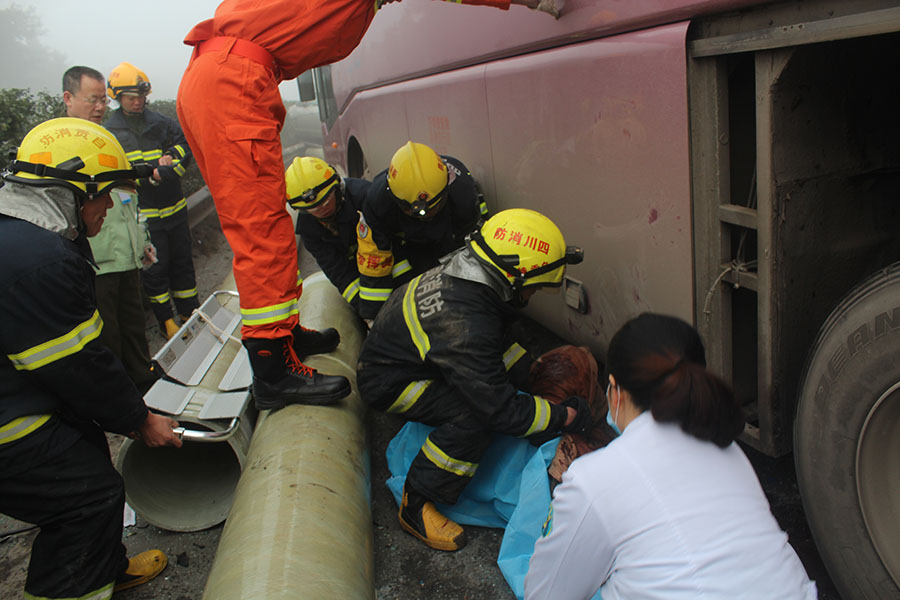 據(jù)記者現(xiàn)場(chǎng)了解,事發(fā)地先后發(fā)生兩起連環(huán)追尾事故,第一起事故造成包括1輛食用油罐車、2輛小轎車、3輛大客車和5輛大貨車在內(nèi)的11輛車連環(huán)追尾相撞,其中一輛客車還發(fā)生側(cè)翻。事故發(fā)生后,大量玻鋼管、鋼筋等貨物撒落一地,整個(gè)交通完全中斷。而距離第一現(xiàn)場(chǎng)不到300米處,1輛小轎車和2輛貨車因閃避不及再次發(fā)生追尾和擦碰事故。消防員和120到場(chǎng)后,迅速對(duì)死傷者展開救援,高速交警部門也第一時(shí)間對(duì)現(xiàn)場(chǎng)實(shí)施了交通管制。