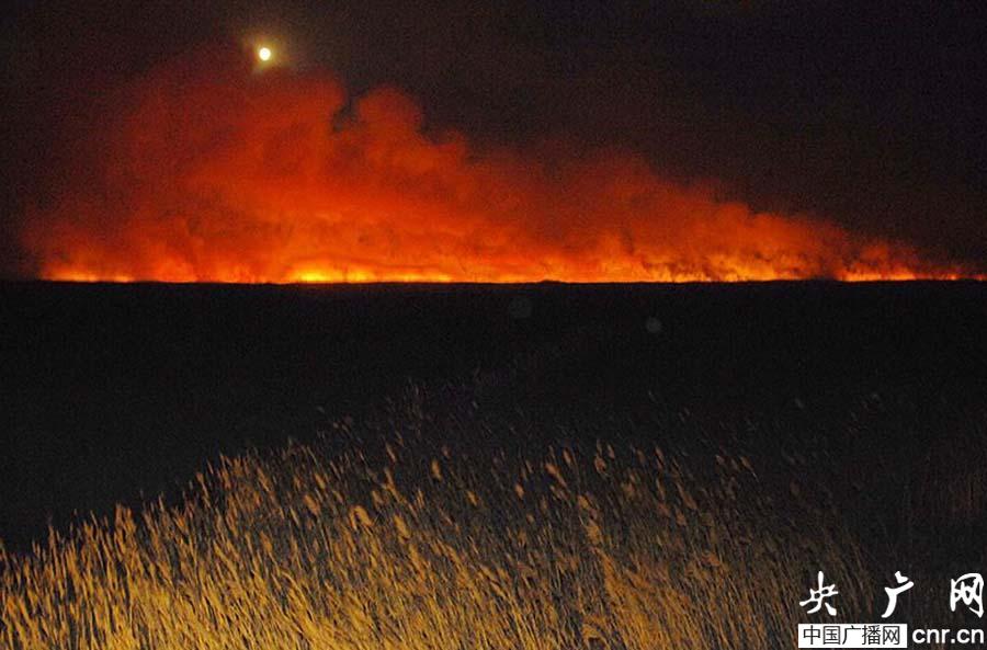 新疆博斯騰湖蘆葦燃起大火(央廣網(wǎng)發(fā) 達(dá)林塔 攝)