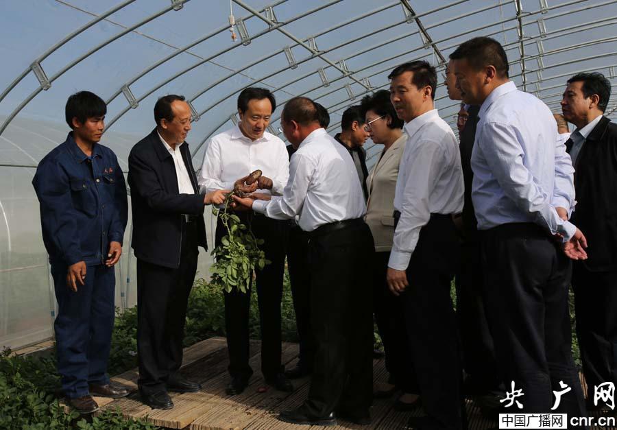 自治區(qū)領(lǐng)導(dǎo)在固原市天啟馬鈴薯脫毒中心溫棚考察(央廣網(wǎng)記者 許新霞 攝)