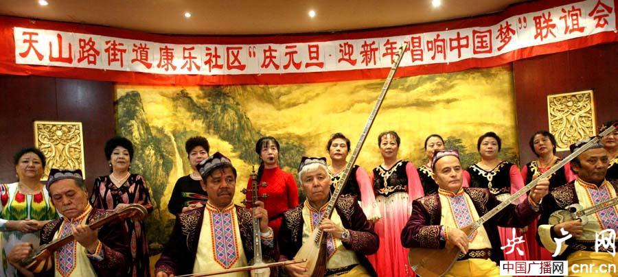 克拉瑪依康樂社區(qū)居民正在表演十二木卡姆喜迎新年元旦(周建玲、盛丹攝)(央廣網(wǎng)記者 張雷 攝)