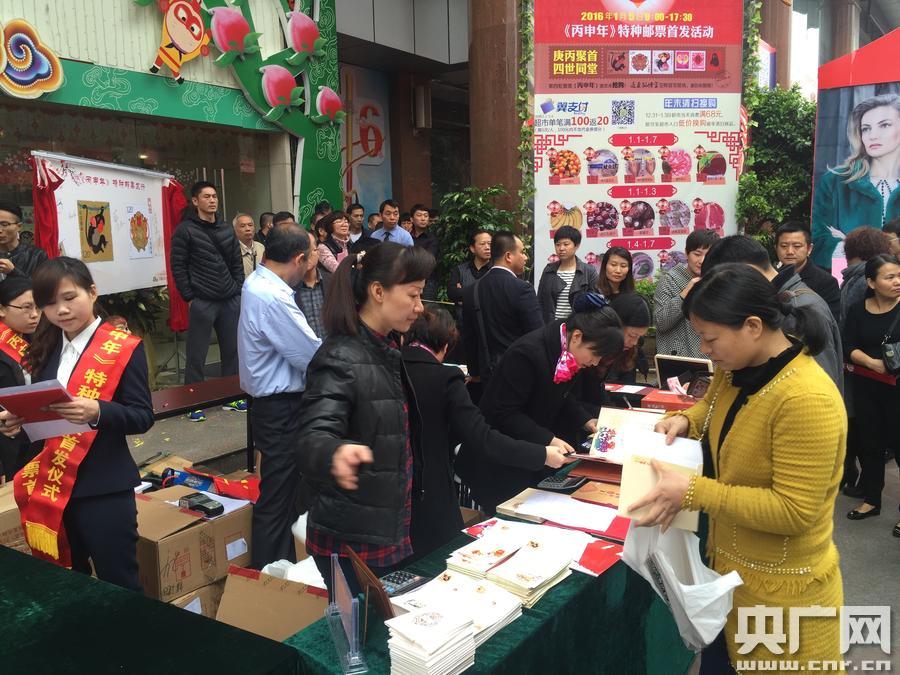 央廣網(wǎng)廈門1月5日消息(記者 馬寧)2016年是農(nóng)歷丙申猴年,喜歡集郵的朋友一定知道猴年對(duì)于集郵界的特殊意義,36年前,我國(guó)工藝美術(shù)大師黃永玉創(chuàng)造了生肖郵票的一個(gè)奇跡,當(dāng)時(shí)票面僅為8分錢一枚的金猴郵票在幾十年間價(jià)格不斷上漲,目前已經(jīng)漲到大約1萬2千元左右。時(shí)隔3個(gè)輪回,今年已經(jīng)92歲高齡的黃永玉再次執(zhí)筆,為即將到來的丙申猴年再度設(shè)計(jì)了一套猴票,今天這套猴票在全國(guó)各大城市發(fā)布,廈門郵政今天總共在市區(qū)四個(gè)點(diǎn)設(shè)立了發(fā)售現(xiàn)場(chǎng),方便市民購(gòu)買。