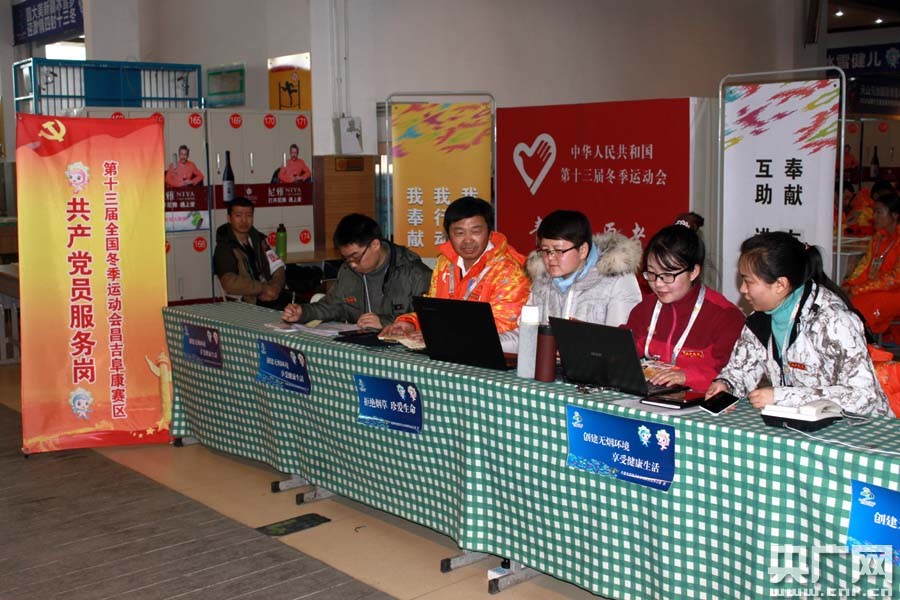 第十三屆全國(guó)冬季運(yùn)動(dòng)會(huì)有六個(gè)雪上比賽項(xiàng)目在自家門口舉辦,阜康人感到十分光榮和自豪。為了給比賽創(chuàng)造一個(gè)良好的服務(wù)軟環(huán)境,使比賽順利、圓滿、成功,阜康市結(jié)合多年黨建經(jīng)驗(yàn),在賽區(qū)200多名志愿者中設(shè)立了臨時(shí)黨支部,在參與“十三冬”各項(xiàng)服務(wù)的機(jī)關(guān)黨員干部、志愿者隊(duì)伍中開(kāi)展黨員“亮身份、比奉獻(xiàn)、展風(fēng)采”活動(dòng),并發(fā)出倡議書(shū)1200余份,設(shè)立了黨員服務(wù)臺(tái)展牌,每一名黨員胸前佩戴了“先鋒崗”標(biāo)識(shí),以親切、細(xì)心、周到的服務(wù),使運(yùn)動(dòng)員調(diào)整到最佳競(jìng)技狀態(tài),使觀眾在冰天雪地里感受溫暖,看得舒心開(kāi)心。
