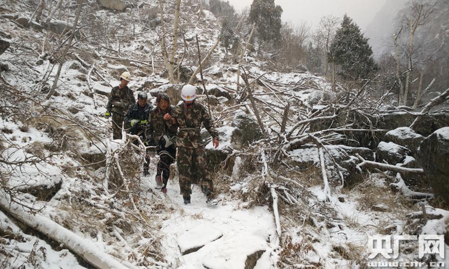 晚上10時多消防官兵抵達滾鐘口賀蘭石礦山腳下,通過詢問得知,被困人員位置較遠,山路崎嶇。由兩名景區(qū)巡山人員領路,救援官兵深入山中進行救援,并分成兩組進行找尋。但由于深夜無法確定被困人員位置, 今日凌晨,7名救援官兵攜帶救援器材再次與巡山人員進山救援。上午11時確定被困者位置,12時找到了被困十多個小時的兩名被困人員。在下山的途中突然下起了大雪,山路被雪覆蓋,在利用安全繩互相牽引下試探一點一點往山下撤離。經過連續(xù)8個多小時的艱苦救援,下午2時40分,兩名被困人員被成功救下山,身體并無大礙。