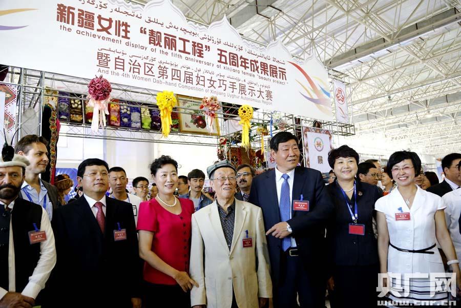 王蒙、史大剛等領(lǐng)導(dǎo)和國內(nèi)外嘉賓參觀新疆女性“靚麗工程”五周年成果展暨新疆第四屆婦女巧手展示大賽(央廣網(wǎng)記者 張雷 攝)