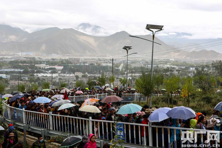 9月1日,拉薩哲蚌寺展佛,數十萬信徒前往朝拜。(央廣網記者 張壘 攝)