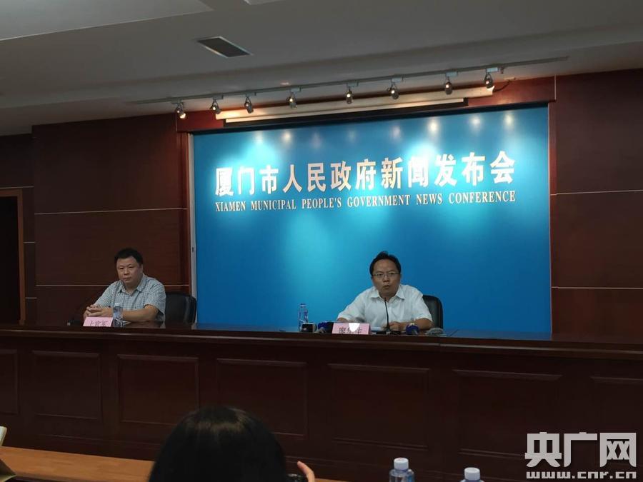 廈門市政府秘書長廖華生通報災后重建的簡要情況(央廣網發(fā) 呂貝娜 攝)