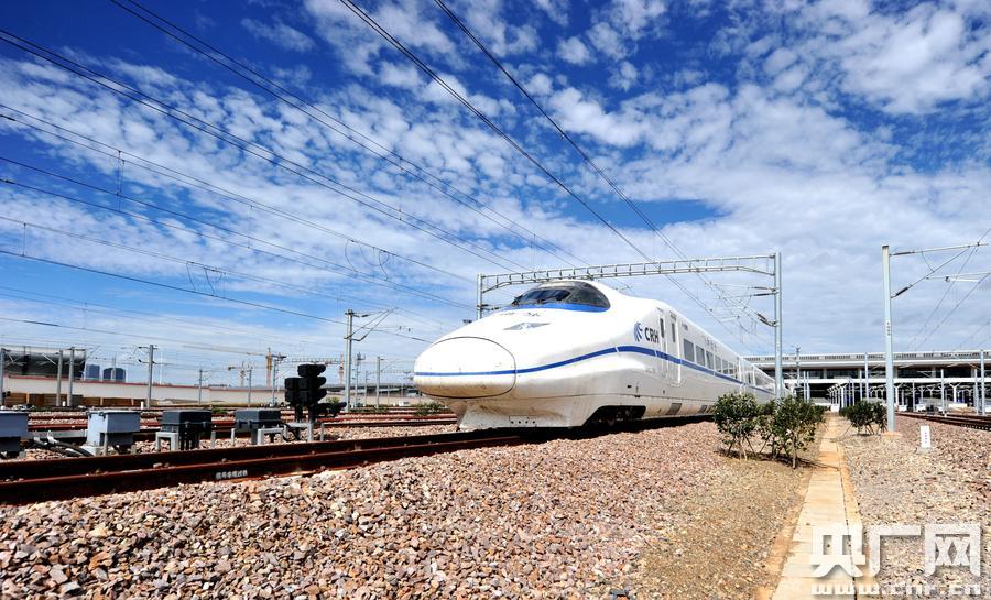 “試跑”動車從昆明南站一路向南馳騁前往云南省玉溪市。張偉明攝影(央廣網(wǎng)記者 李健飛 攝)