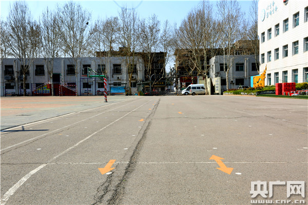 “一樓是低年級的學生,為了防止他們不小心摔傷,我們把樓下都鋪上了塑膠草坪,另外考慮到校門口路窄車多,我們還設置了學生安全通道。”除此,記者在學校的操場上還看到一排排的白色圓點,杜媛媛說這是為了方便學生上操列隊特意設置的。