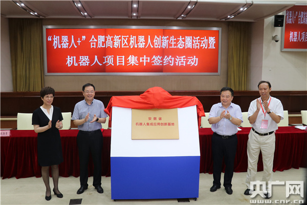 安徽省委常委、合肥市委書記宋國權(quán),安徽省經(jīng)信委主任牛弩韜,合肥市長凌云,中國機(jī)器人產(chǎn)業(yè)聯(lián)盟執(zhí)行理事長兼秘書長宋曉剛見證簽約儀式,并為“安徽省機(jī)器人集成應(yīng)用創(chuàng)新基地”揭牌。