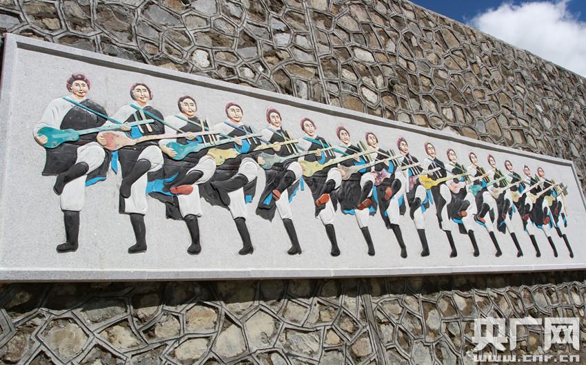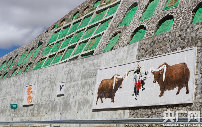 公路邊獨具特色的藏文化元素浮雕(央廣網(wǎng)記者 普布次仁 攝) -