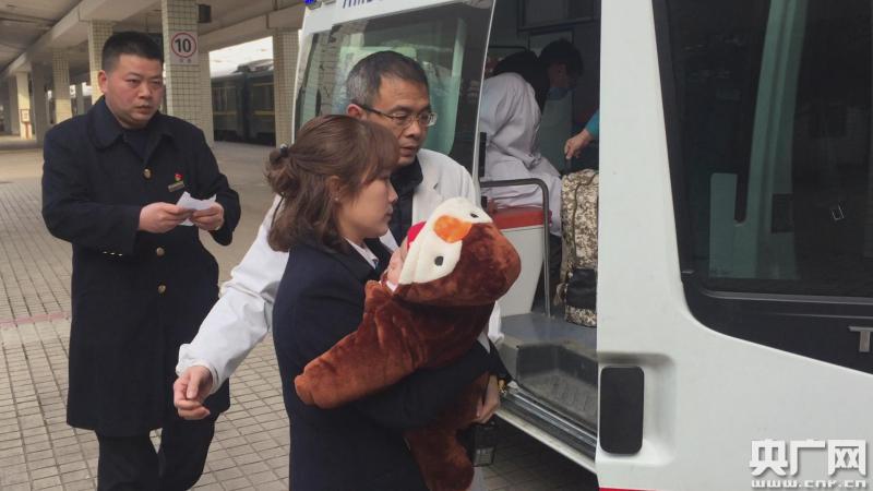 入院后,車站工作人員在旅客身上摸出手機(jī),聯(lián)系上了旅客的丈夫,另一頭,大伙擔(dān)心孩子餓著便從外面買回奶瓶,沖好牛奶,邊哄邊喂,孩子也就不哭不鬧了。由于孩子沒人照顧,值班站長楊雨等工作人員便一直守候在孩子身邊。
