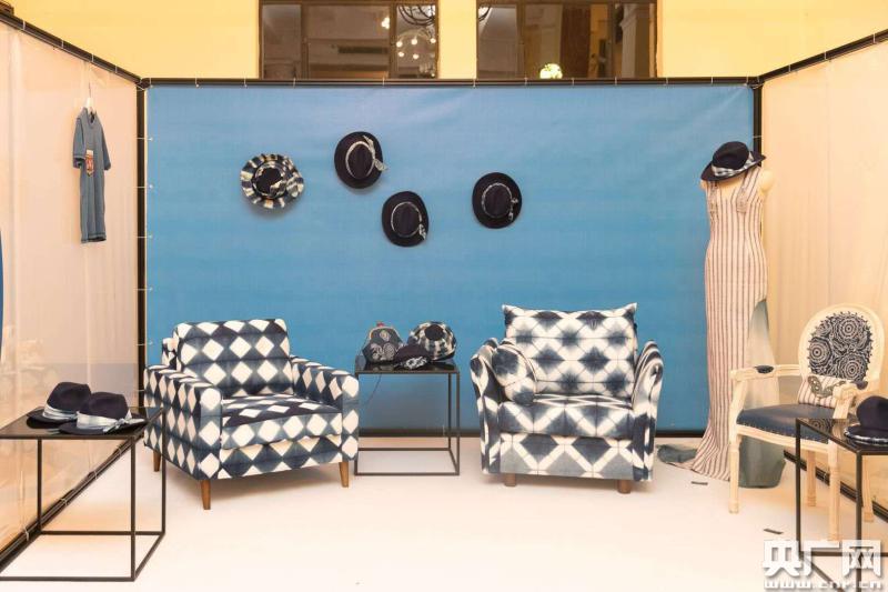 以藍(lán)染工藝設(shè)計(jì)出的家居物品(央廣網(wǎng)發(fā) 上海公共藝術(shù)協(xié)同創(chuàng)新中心(PACC)供圖)