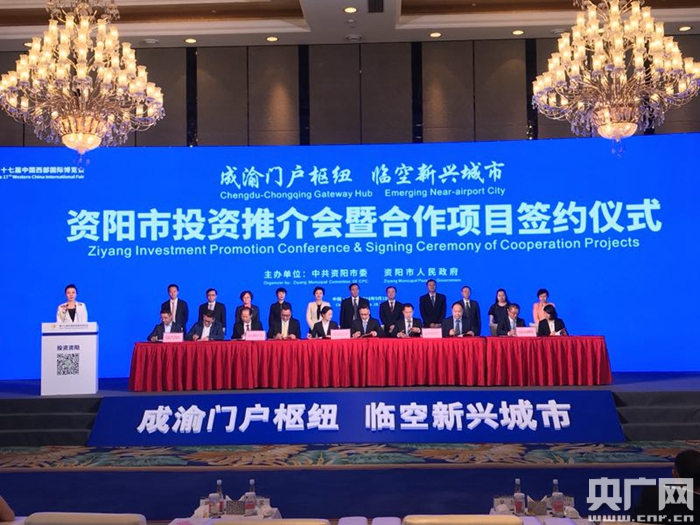 央廣網(wǎng)成都9月19日消息(記者劉濤)9月18日下午,“成渝門戶樞紐·臨空新興城市—資陽市投資推介會(huì)暨合作項(xiàng)目簽約儀式在成都舉行。活動(dòng)共簽約26個(gè)合作項(xiàng)目,投資總額達(dá)324.37億元。