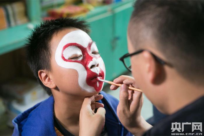 幾張稚嫩童真的小臉兒,變成了正經(jīng)八百的京劇臉兒。9月18日,知名京劇大師徐孟珂老師細(xì)細(xì)涂抹,把幾位瑤族鄉(xiāng)小學(xué)的孩子,變成了京劇小“票友”。