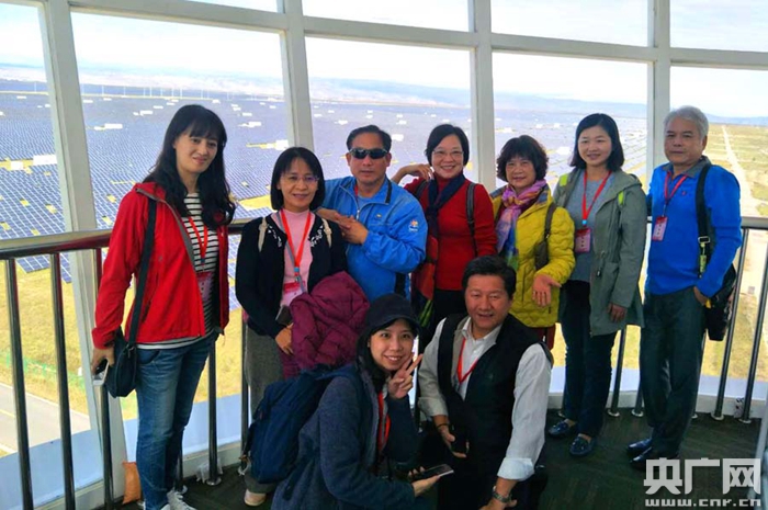 臺灣少數(shù)民族交流團成員爭相拍攝光伏電板矩陣(央廣網(wǎng)發(fā) 青海臺辦提供)