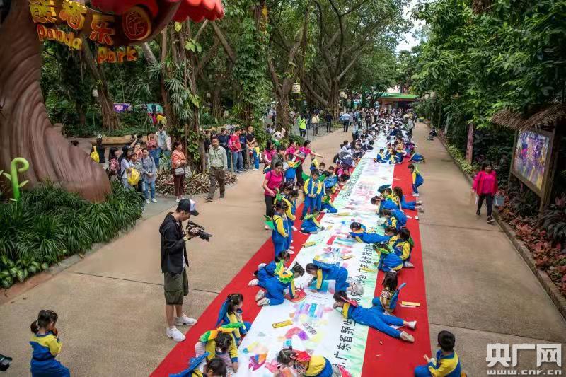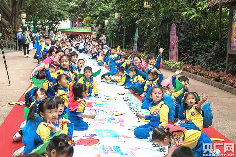 央廣網(wǎng)廣州11月10日消息(記者鄭澍)11月9日,“第28屆野生動物宣傳月暨長隆神奇空中動物科普月”主題活動在廣州長隆野生動物世界啟動。超1000名學生代表、野生動植物保護志愿者和廣大游客,共同繪制了保護野生動物的長畫“秘密森林”。