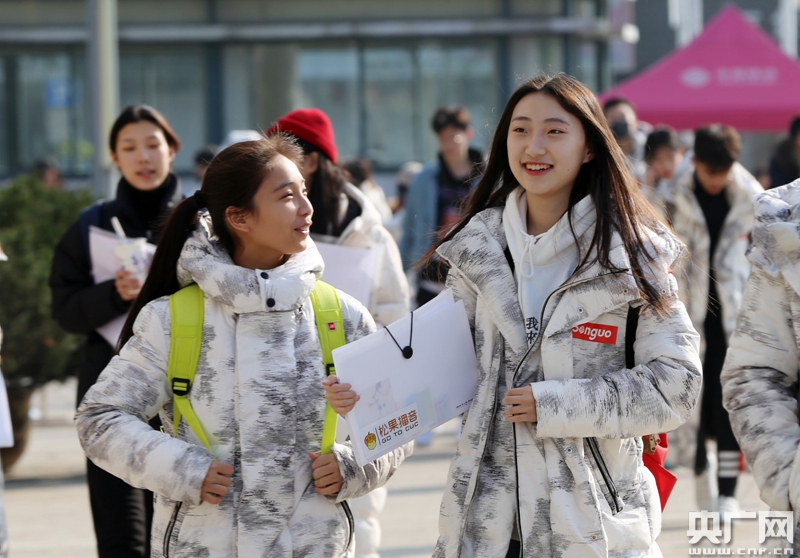 1月23日,兩位考生信心滿滿準備進入考場。(央廣網(wǎng)記者 魏煒 攝)