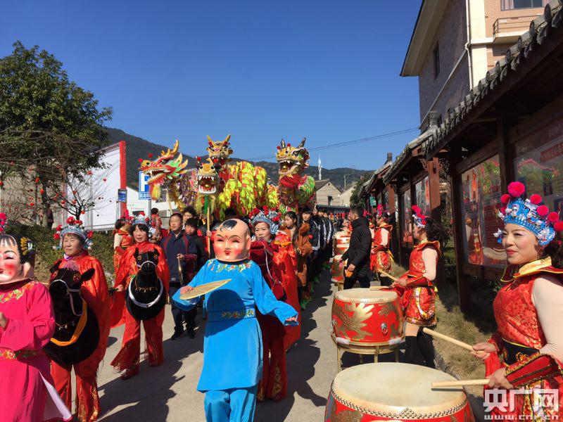 大頭娃娃、奉化布龍走上街頭鬧新春(央廣網(wǎng)發(fā) 嚴(yán)世君 攝)