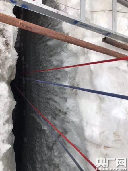 狹窄的冰縫給救援帶來了不小的困難(央廣網(wǎng)發(fā) 甘肅藍(lán)天救援隊(duì)供圖)
