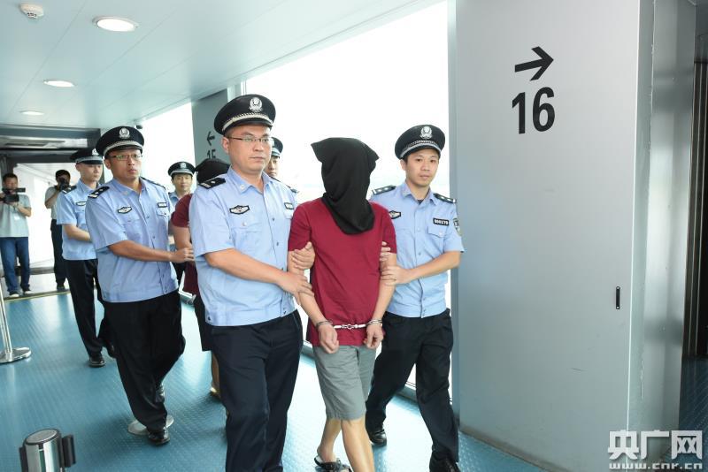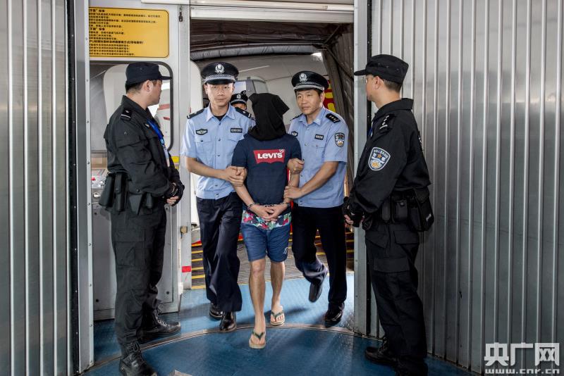 圖為汕頭海關(guān)緝私警察將犯罪嫌疑人押解回國。(央廣網(wǎng)發(fā) 袁國宏攝)