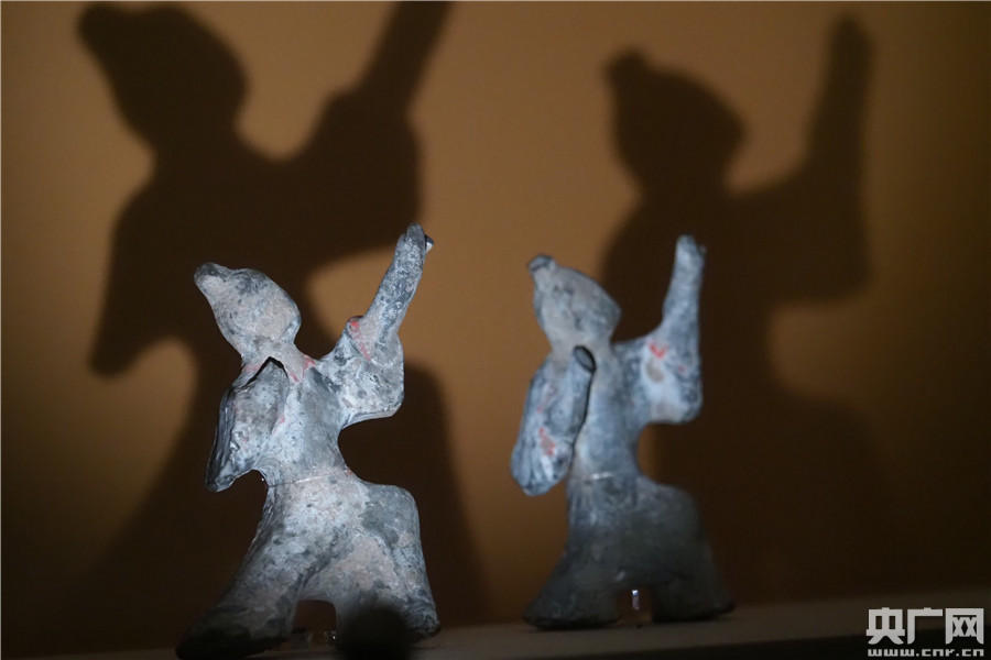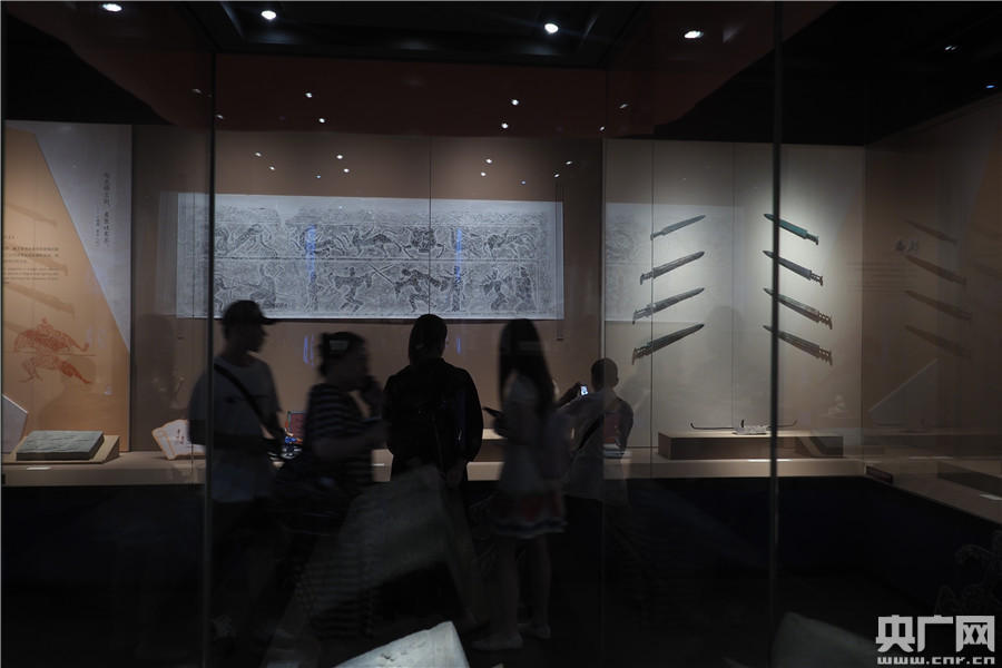 展覽第一單元“武——長(zhǎng)劍斷流星”由射術(shù)、御術(shù)、技擊、手搏與斗獸等展示內(nèi)容構(gòu)成。第二單元“戲——百戲起龍魚”則進(jìn)一步展示了漢晉時(shí)期的游藝活動(dòng)與文化風(fēng)尚。