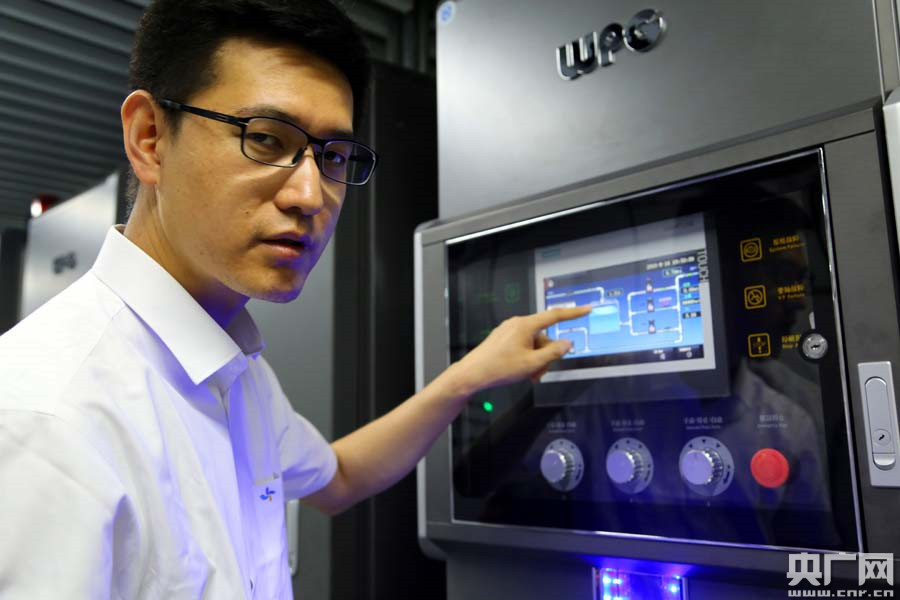 西寧市第七水廠廠長邵龍在介紹凈化水裝置(央廣網(wǎng)記者 張雷 攝)