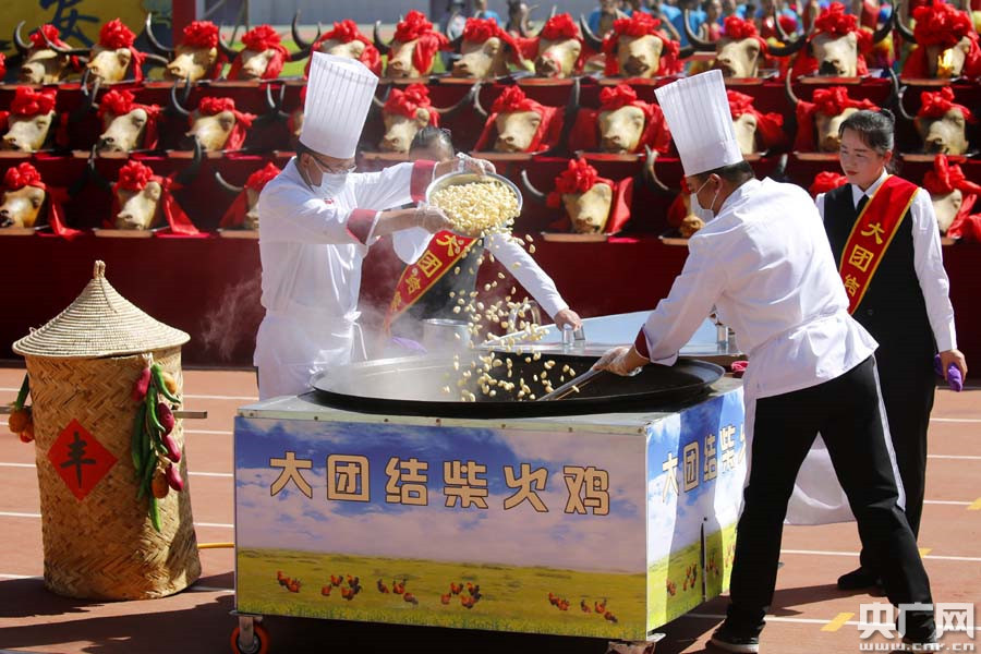 現(xiàn)場(chǎng)大鍋制作柴火雞(央廣網(wǎng)記者 張雷 攝)