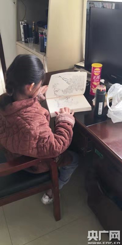 丟失的小女孩在民警照料下安靜地在派出所看書(shū)(央廣網(wǎng)發(fā) 五里界派出所供圖)