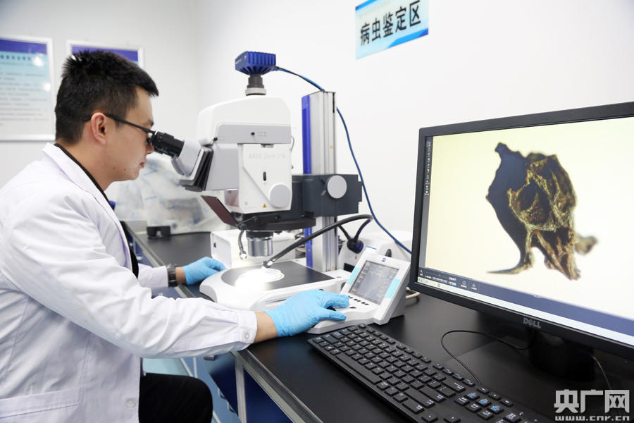 工作人員鑒定種子種類(央廣網(wǎng)發(fā) 銀川海關(guān)供圖)