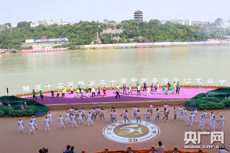 央廣網(wǎng)安康6月25日消息(記者王佳愛 舒隆煥 劉昱)伴隨著渾厚的鐘聲,今天(25日)9:00,第二十屆中國(guó)安康漢江龍舟節(jié)主題活動(dòng)在陜西安康開幕。