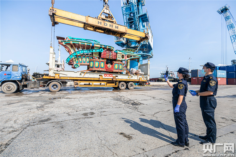 7月28日,歷時45天海上運(yùn)輸后,裝載在7個40尺集裝箱、3個敞頂集裝箱中的花車漂洋過海抵達(dá)港口,鮮艷奪目、造型獨(dú)特的花車立即成為碼頭上一道亮眼風(fēng)景線。今年7月起,廣州市啟動“廣州歡迎你——文旅復(fù)蘇助力百業(yè)復(fù)興”系列活動,廣州長隆集團(tuán)本次進(jìn)口的12輛花車將舉辦“廣州世界嘉年華”活動。由于花車屬于個性化定制設(shè)備,整體花車體積達(dá)120立方米,重2噸,共有181個不同品名的定制整體及專屬零部件,海關(guān)監(jiān)管面臨著貨物特殊性較強(qiáng)、組成種類繁雜、核對信息難度大的問題。同時,由于船期不確定,通關(guān)時效要求較高,文旅活動的順利開展面臨著一系列挑戰(zhàn)。
