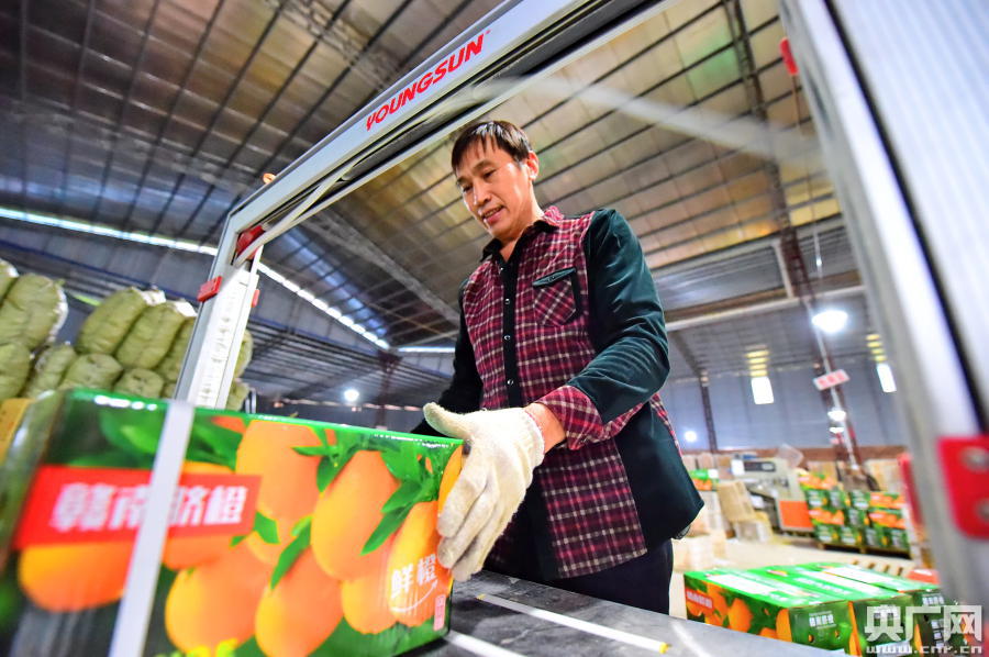給臍橙打包封箱(央廣網(wǎng)發(fā) 通訊員供圖)