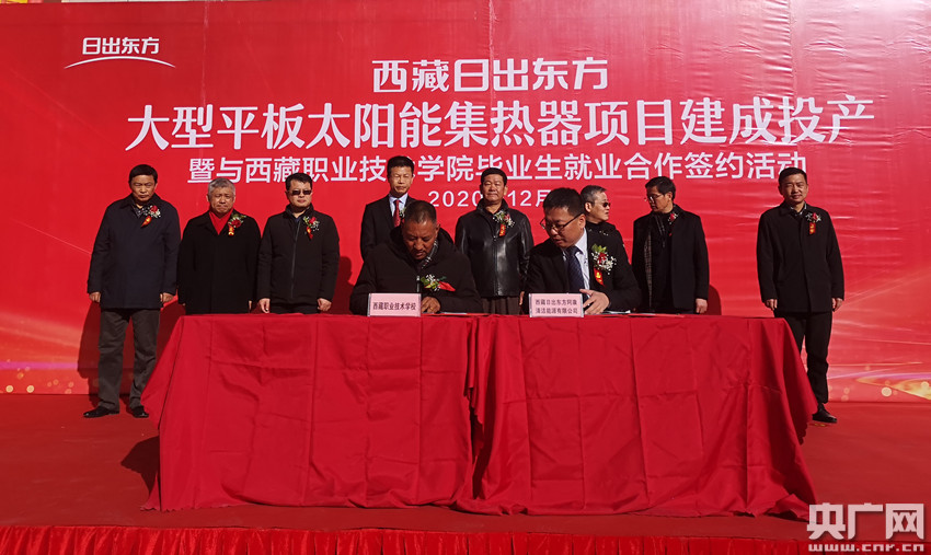 央廣網(wǎng)拉薩12月22日消息(記者普布次仁)西藏日出東方大型平板太陽能集熱器項(xiàng)目建成投產(chǎn)儀式暨與西藏職業(yè)技術(shù)學(xué)院畢業(yè)生就業(yè)合作簽約活動(dòng),今日(22日)上午在拉薩舉行。