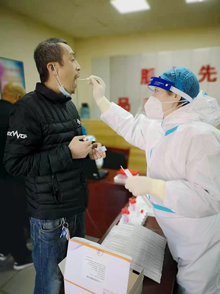 醫(yī)護(hù)人員采集檢測(cè)樣本(央廣網(wǎng)發(fā) 徐楊 供圖)