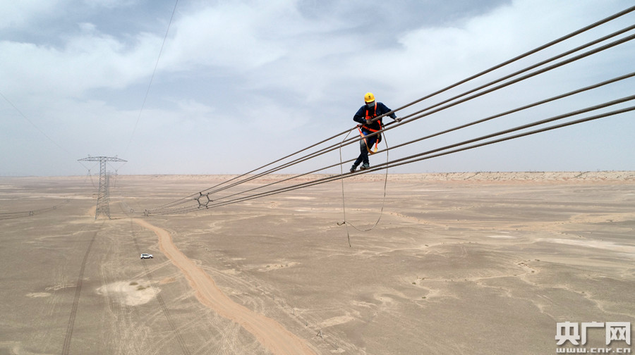 新疆送變電有限公司檢修人員對哈鄭直流進行走線巡檢(央廣網發(fā) 通訊員李效甲 攝)