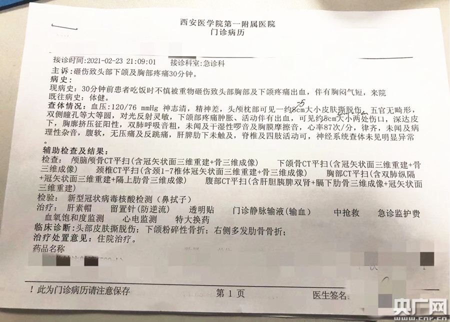其中一名傷者病例(央廣網(wǎng)見習(xí)記者周彤 攝)
