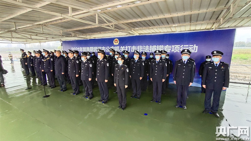 當日上午,在武漢市公安局水上分局巡防檢查站躉船上,武漢市公安局水上分局、武漢市農(nóng)村農(nóng)業(yè)局農(nóng)業(yè)綜合執(zhí)法支隊的70余名執(zhí)法人員列隊集結。躉船邊的江面上,7艘執(zhí)法巡邏艇整裝待發(fā)。10時,現(xiàn)場指揮員黃兆祥、王文高在宣布命令后,鳴槍發(fā)令,參巡執(zhí)法隊伍按照方案既定路線,依次登艇出發(fā)奔赴各自執(zhí)法水域執(zhí)行任務。