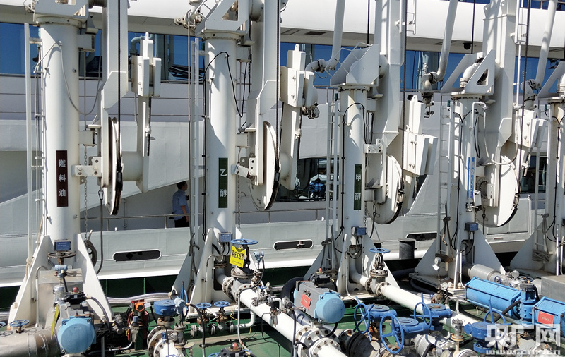 南京龍翔洗艙水接收轉(zhuǎn)運(yùn)碼頭,一排排管線正等待著裝載洗艙水的船舶?俊#ㄑ霃V網(wǎng)記者 黃炎秋 攝)